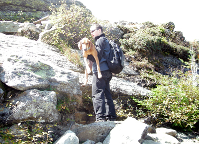 On the picture Mike was helping to carry Sage to the top of Mt. Washington as she was afraid to jump on big rocks.